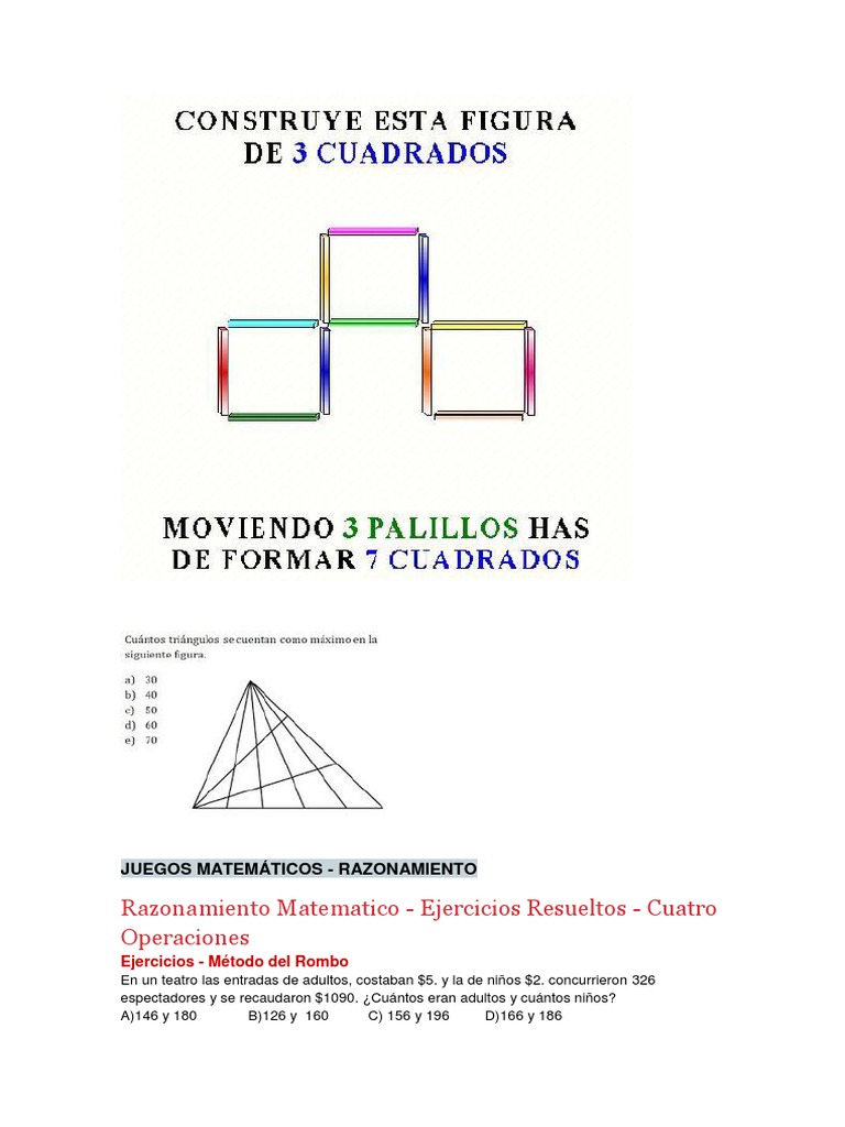 Descubre los mejores ✅ juegos de matemáticas para secundaria ✅ para que puedas mejorar tu a veces los incluyo en mis clases, pero van bien para todas las edades. Conceptos , ejemplos , ejercicios , sugerencias , preguntas y problemas resueltos de razonamiento lógico matemático. Juegos mentales de logica juegos mentales imagenes acertijos matematicos resueltos rompecabezas matematicos estimulacion cognitiva para adultos ejercicios de estimulacion. Cada juego es un rompecabezas basado en lógica numérica. Aquí hallaras problemas y ejercicios para resolver de todos los temas de razonamiento matemático que lo podrás descargar gratis y de forma fácil en.